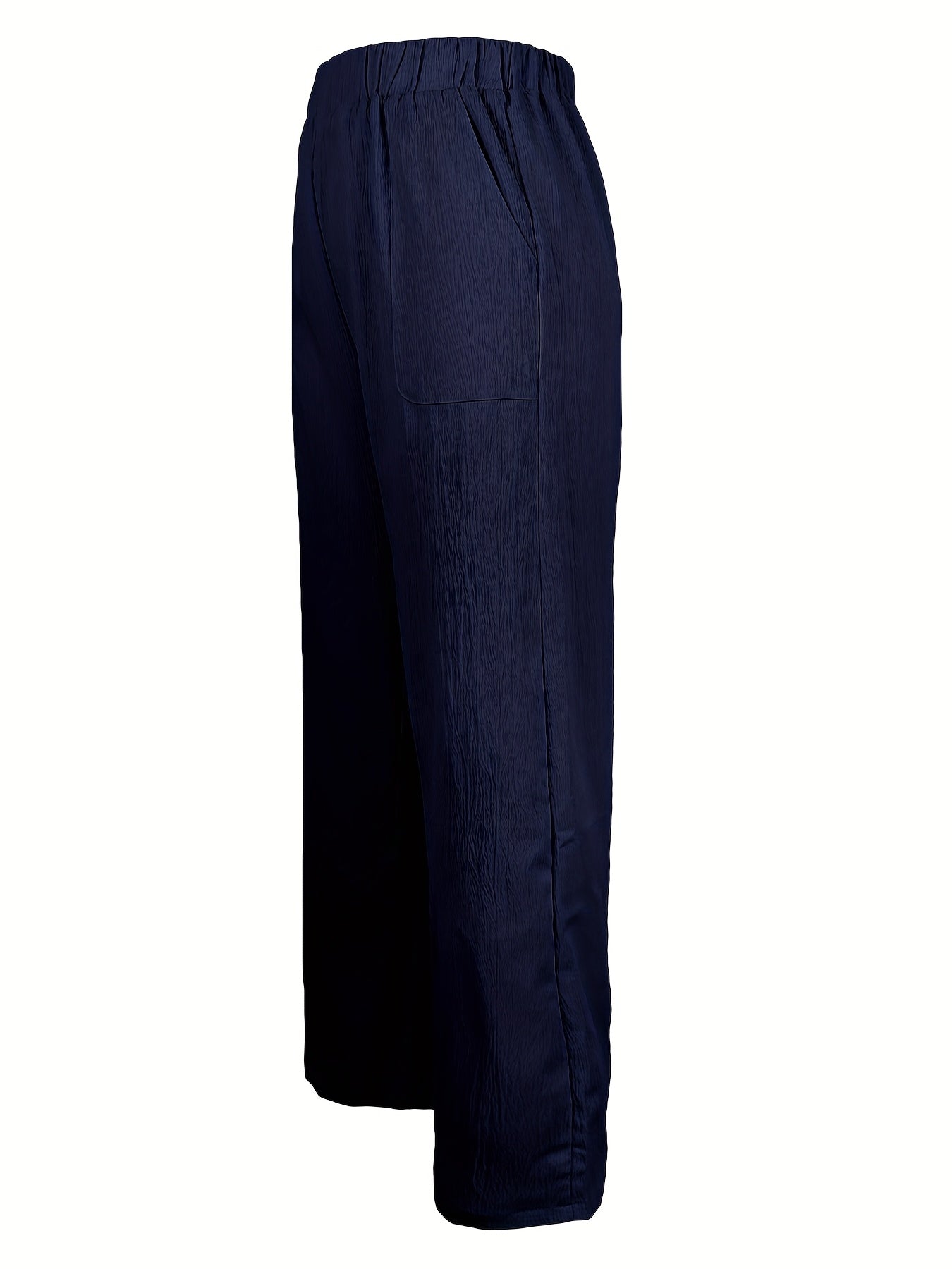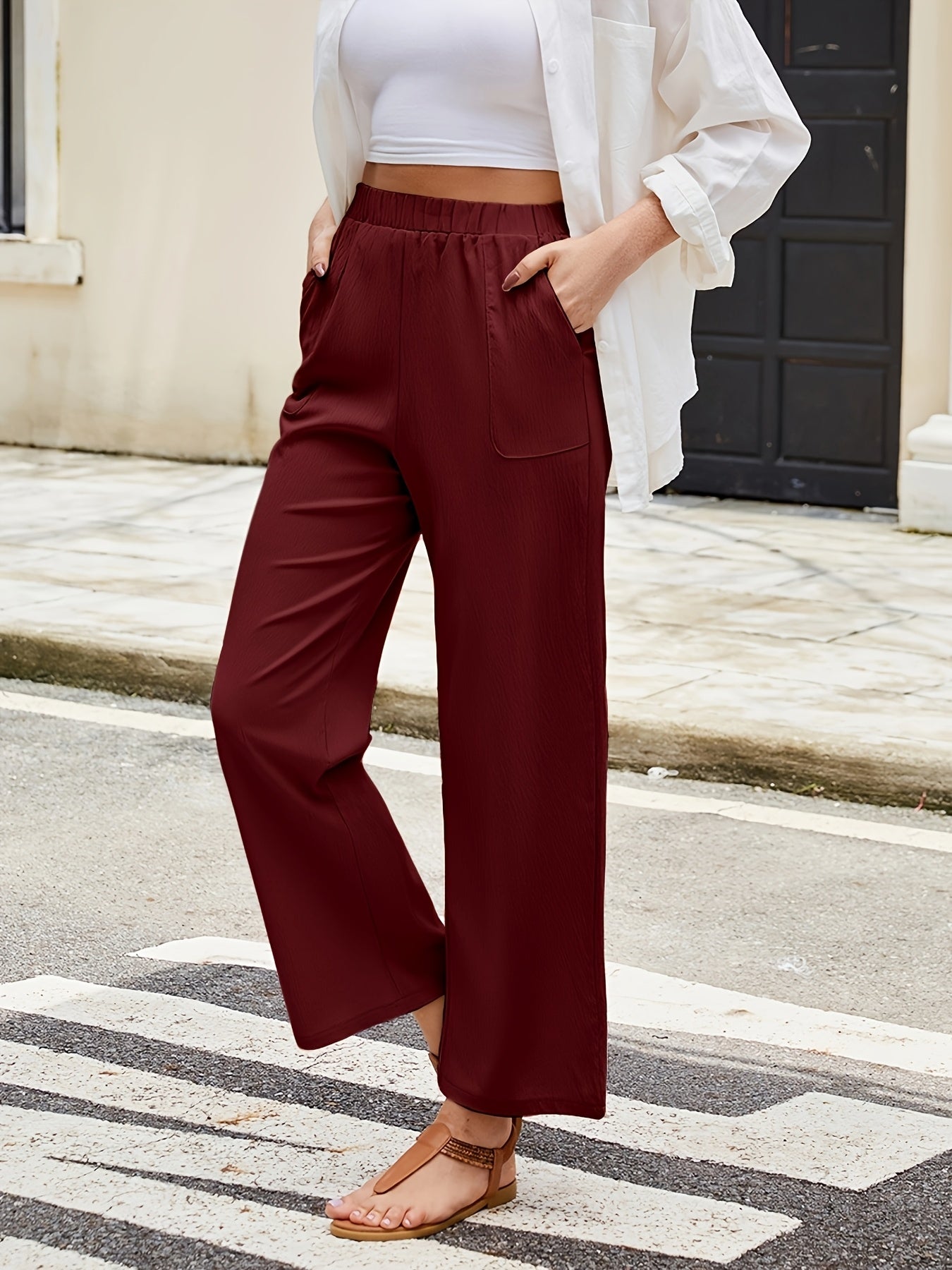 Casual effen kleur loszittende wijde pijpen lange broek met elastische tailleband voor dameskleding.